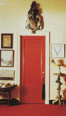 The cover of Allure is red and since I didn't have any photos from the book, I thought it would be fun to take another look at Diana Vreeland's Park Avenue apartment. According to her decorator, Billy Baldwin, she told him “I want this room to be a garden-but a garden in hell.” He replied “I knew what it meant: red. I searched for an eternity before I found exactly the right material- in John Fowler’s shop in London. It was scarlet chintz with brilliant Persian flowers. I raced home with yards and yards of it and we covered the whole room – walls, curtains, furniture, the works.” Luckily, the bedroom is blue although, still a riot of pattern. Enjoy!