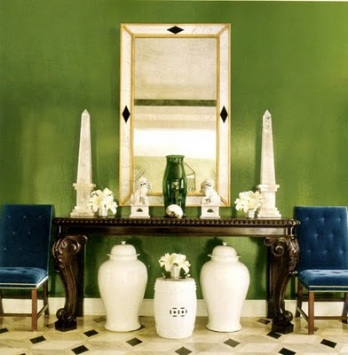 I thought it was interesting that Pantone chose Honeysuckle, a pink shade, as their Color of the Year for 2011. The color that keeps catching my attention in both fashion and design is green. It ranges from peacock to emerald but looks elegant and interesting in every shade. I already bought a satin envelope clutch from J.Crew (sold out online) to add a little color to my wardrobe and it seems every designer sent green down their runway. Green is definitely good!